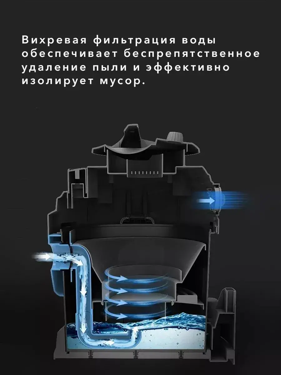 Внутри аквафильтра перед пылью в буквальном смысле вырастает водяная стена из тысяч капелек воды: таким образом обеспечиваются невероятные 99,99% очистки воздуха от пыли и 100% - от пыльцы.