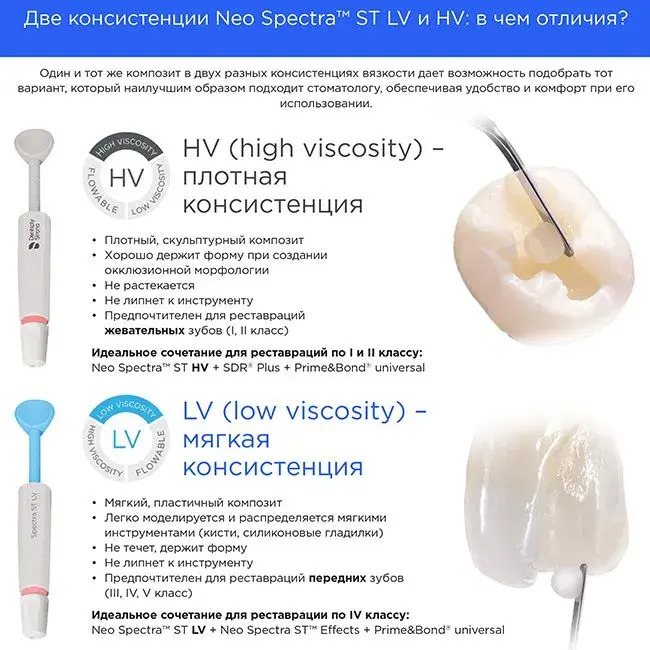 Это стартовый набор шприцев с высоковязким композитом NEO Spectra ST в оттенках A1, A2, A3, A3.5 и A4. Подходит для надежных и эстетичных реставраций передних и жевательных зубов.
