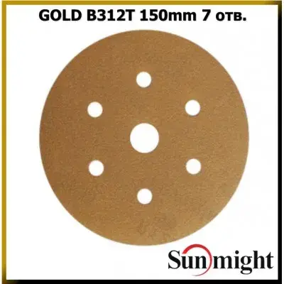 Шлифовальный круг SUNMIGHT GOLD B312T 125мм на липучке, 8 отв, золотистый P-40
