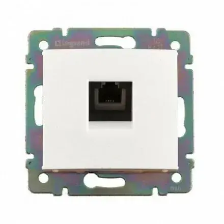 Розетка телефонная Arteor RJ11, серия «Квадрат», белого цвета. Один модуль, 4 контакта, предназначена для подключения телефонных линий или модемов с разъёмом RJ11 (также поддерживает RJ12). Механизм поставляется без рамки и декоративной крышки — требуется установить соответствующую рамку и накладку серии Arteor.