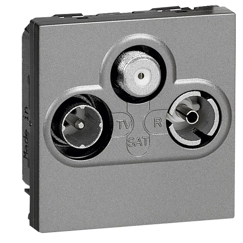 Arteor 572672 от бренда Legrand. Предназначена для подключения телевизионного, радиочастотного и спутникового сигнала — телевизор (TV), FM-радио и спутник (SAT). Выполнена в стильном квадратном дизайне с цветом «магнезиум» (серо-металлик). Подходит для встроенной установки (скрытой монтаж) и современных интерьеров.