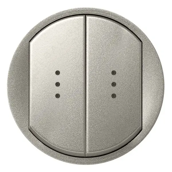 Лицевая панель из коллекции Celiane — стильное и функциональное решение для выключателя на две клавиши с подсветкой. Выполнена в элегантном титан-оттенке, подходит к механизмам серии Celiane.