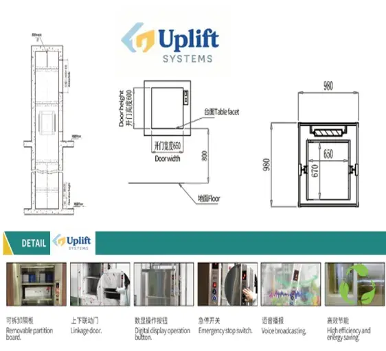 Пищевой подъёмник SJD-CT — это компактное и удобное решение для быстрого вертикального перемещения блюд, продуктов, посуды и прочих предметов между этажами. Он широко используется в ресторанах, кафе, гостиницах, больницах и частных домах. Благодаря гигиеничному исполнению из нержавеющей стали, лифт обеспечивает чистоту и долговечность при ежедневной эксплуатации. Его плавная работа, компактные размеры и простое управление делают процесс подачи блюд быстрым и безопасным.