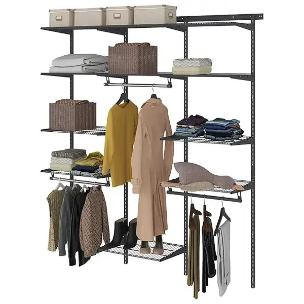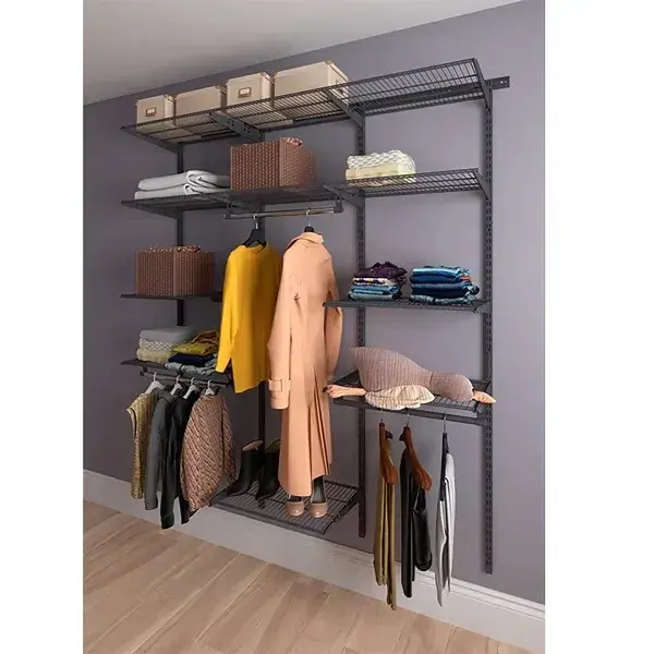 Гардеробная система ПРАКТИК Home Max G180 графит отличается многофункциональностью и подходит для размещения не только в квартирах и частных домах, но также в офисах, гаражах, мастерских, подсобных помещениях и других местах. Благодаря универсальным креплениям, вы сможете легко адаптировать и настроить систему хранения, меняя местоположение элементов и регулируя высоту полок, чтобы система идеально соответствовала вашим потребностям.