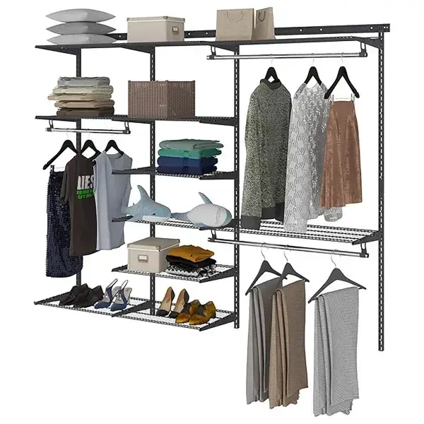 Гардеробная система ПРАКТИК Home Max G210 графит отличается многофункциональностью и подходит для размещения не только в квартирах и частных домах, но также в офисах, гаражах, мастерских, подсобных помещениях и других местах. Благодаря универсальным креплениям, вы сможете легко адаптировать и настроить систему хранения, меняя местоположение элементов и регулируя высоту полок, чтобы система идеально соответствовала вашим потребностям.