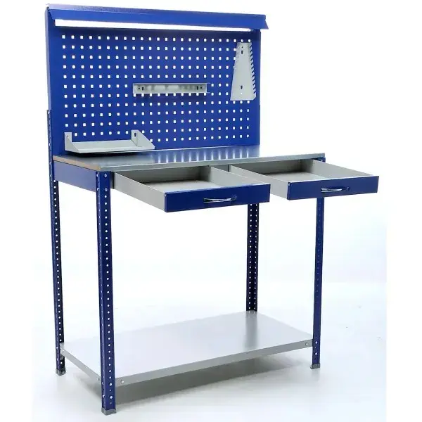 Верстак GARAGE SET 2 предназначен для удобной организации отдельного рабочего места в гараже или на балконе и хранения инструментов, материалов, разнообразных приспособлений и оснастки. Главными достоинствами этой модели можно назвать быструю и лёгкую сборку, а также удобный способ поставки: весь комплект в одной коробке.