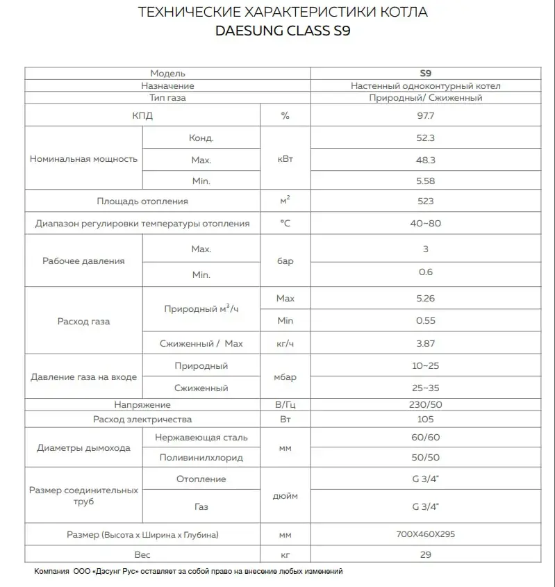 Газовый конденсационный одноконтурный настенный котел S9, для отопления с закрытой камерой сгорания и принудительной системой дымоудаления, для работы на природном газе ГОСТ 5542-87 коммунально-бытового использования.