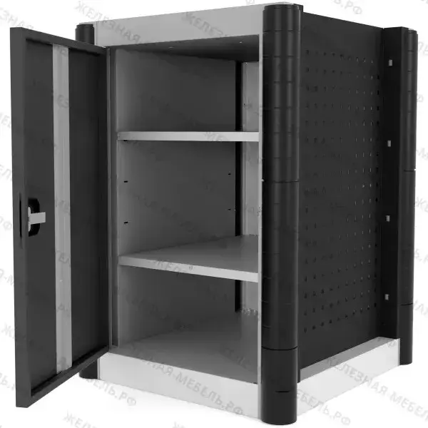 Боковые перфорированные стенки тумбы, позволяют размещать на них различное навесное оборудование (держатели инструмента, отвёрток, ключей, баллончиков, и пр.).