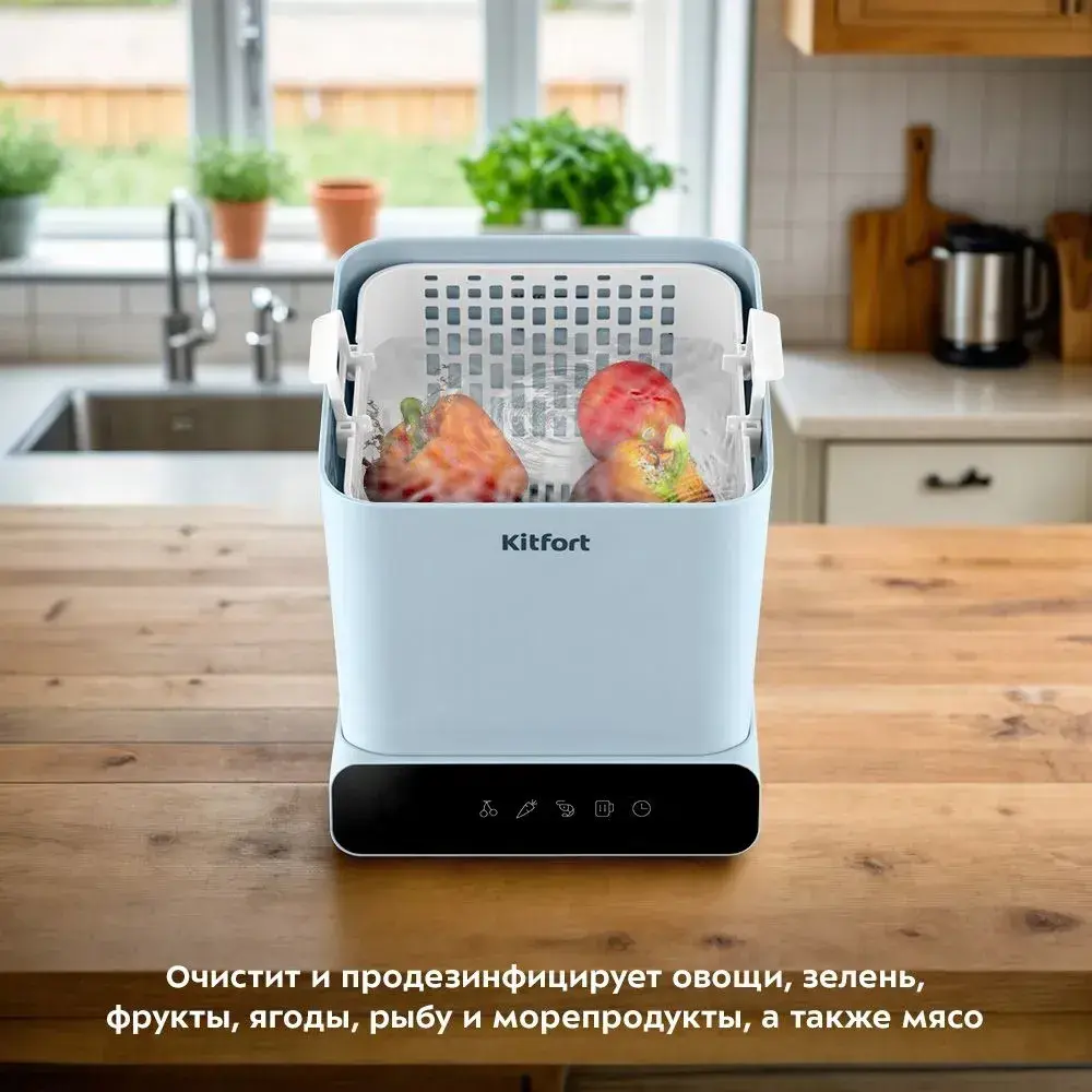 Ультразвуковая мойка Kitfort КТ-6433 — эффективная очистка овощей, фруктов, ягод, зелени, рыбы, морепродуктов и мяса с бактерицидным эффектом.