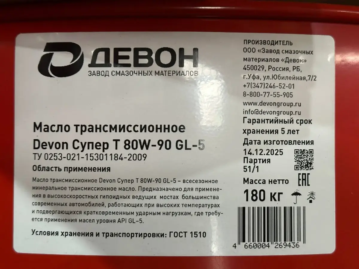 Batafsil tavsif: Transmission moy DEVON Super T SAE 80W-90 GL-5 (205l)