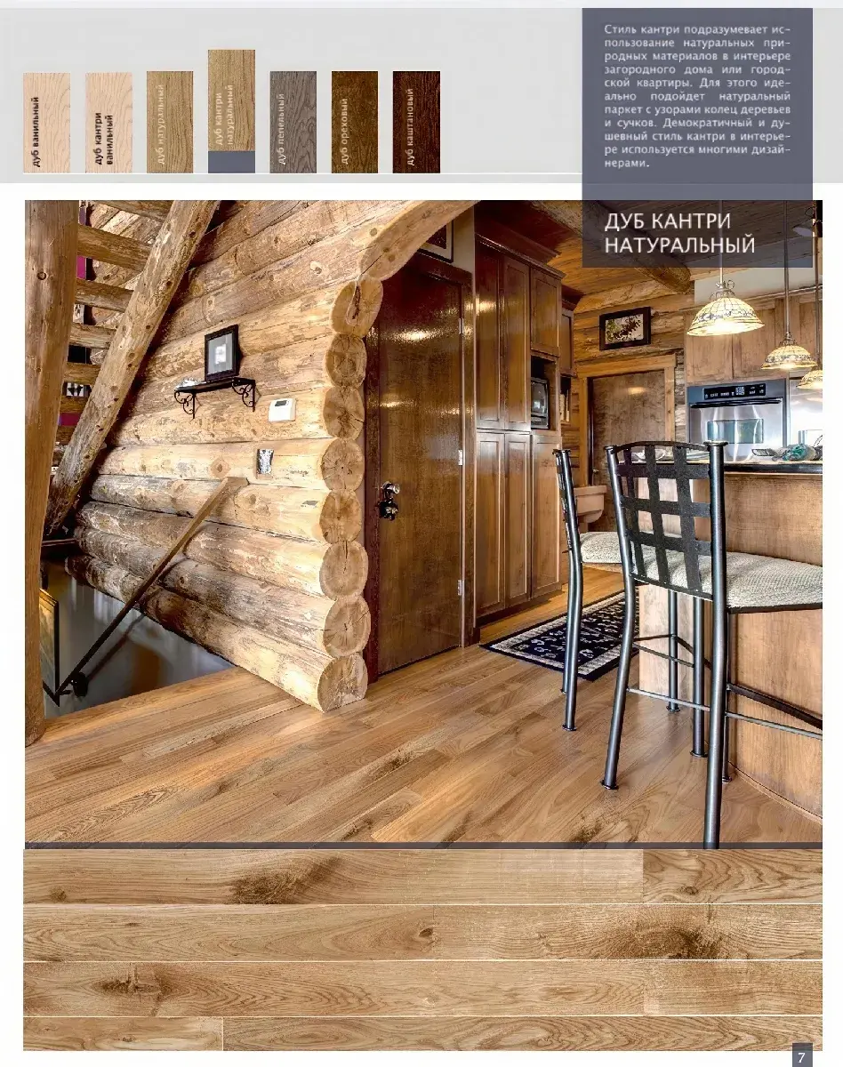 Паркет «Дуб кантри натуральный» подчёркивает естественную красоту древесины с выразительными узорами и природными текстурами. Отличный выбор для интерьеров в стиле кантри, эко или шале. Создаёт атмосферу настоящего природного уюта.