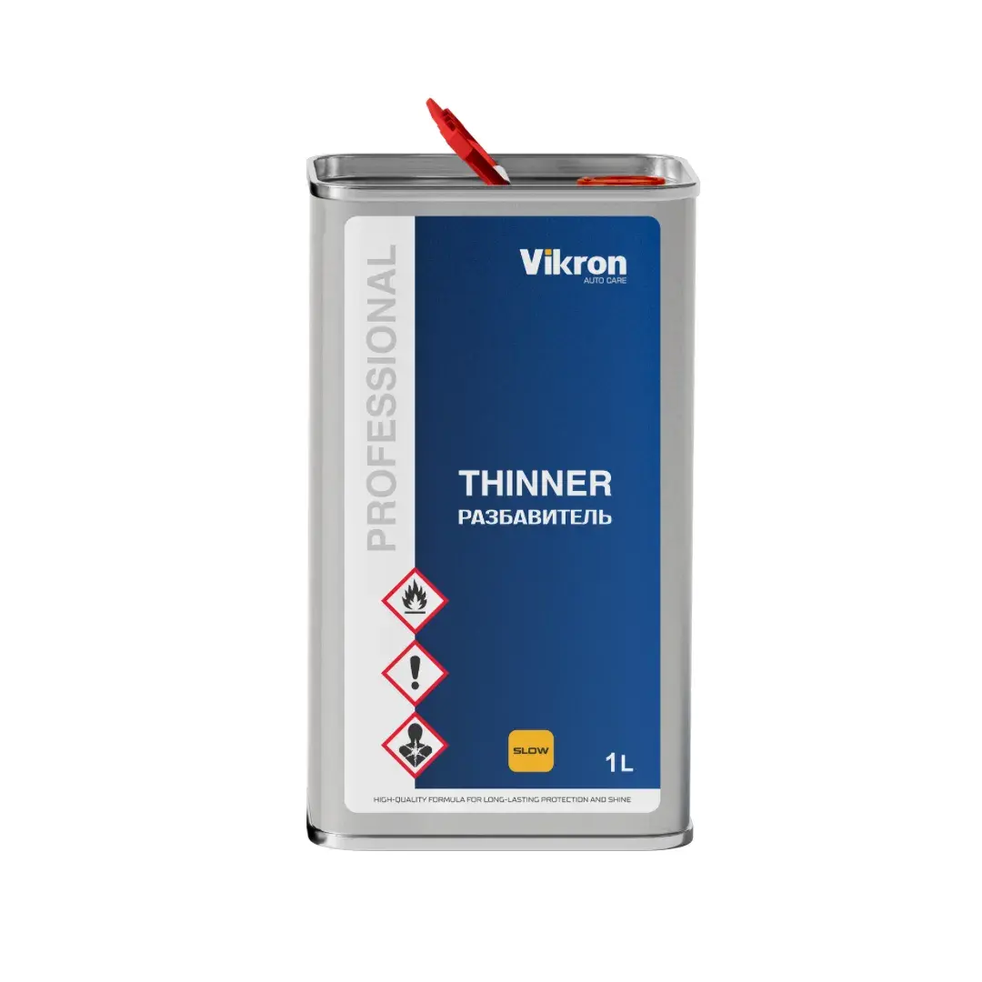 Разбавитель медленный универсальный. Предназначен для разбавления базовых эмалей, а также акриловых продуктов. Особенности данного разбавителя в том, что он отлично работает при высокой температуре окраса в очень жарких условиях. Медленный, при разбавлении плотность краски не падает, сухость базовых эмалей отсутствует, поверхность выглядит идеально.