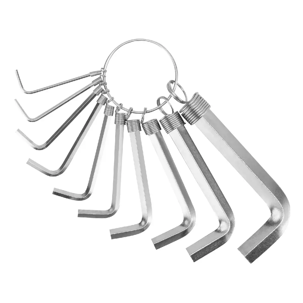 Hex Allen kalitlari to'plami, 1,5–10 mm, 10 dona, nikel bilan qoplangan, halqada. Sparta Toshkentda, sotib olish (Art: 8NAMQAT) - Tovar.uz