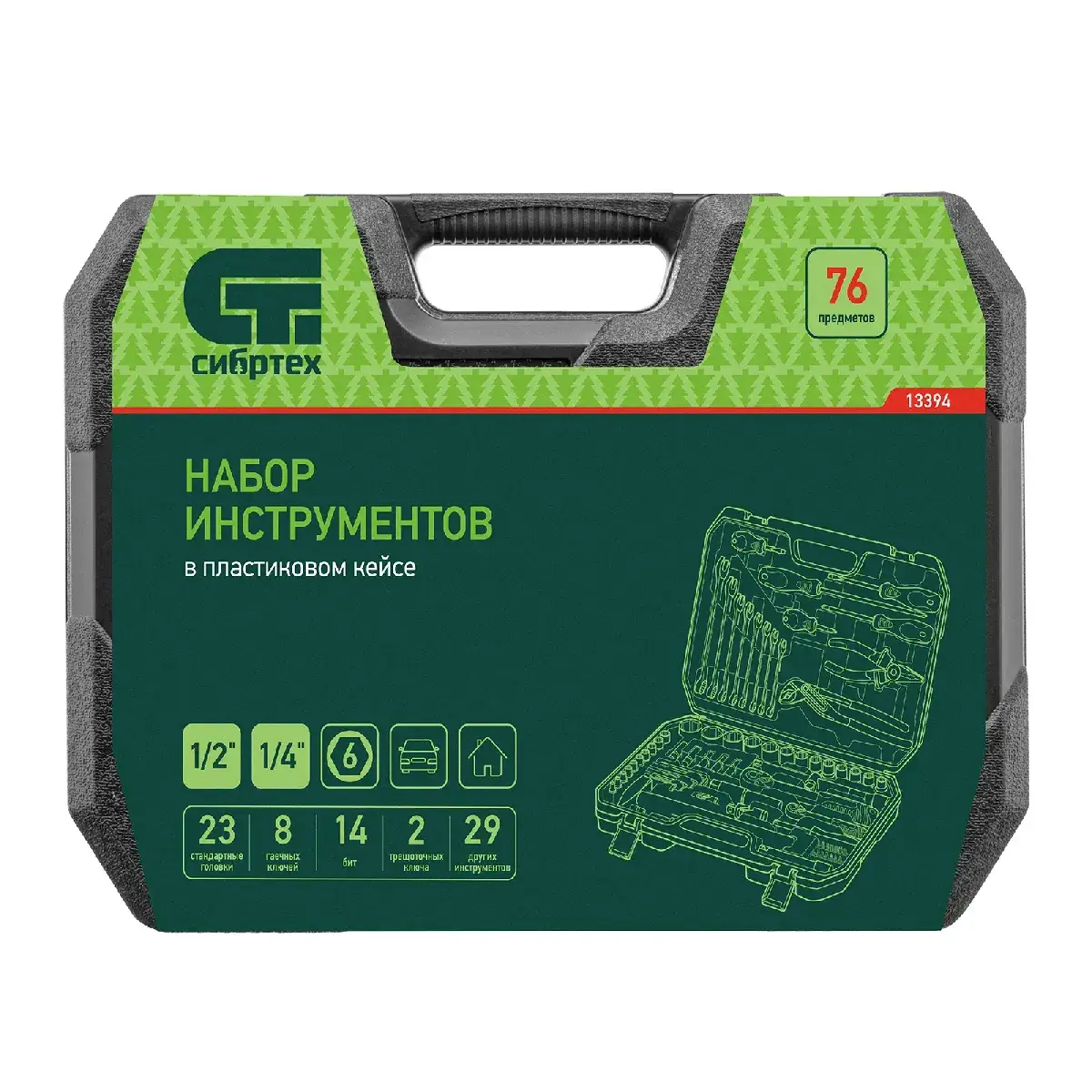 Batafsil tavsif: Asboblar to'plami, 1/2", 1/4", plastik quti, 76 dona. Sibirtech