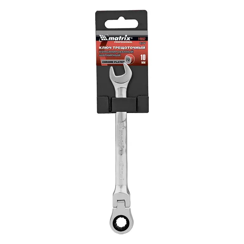 Batafsil tavsif: Kombinatsiyalangan kalit, 10 mm, CrV, ilmoqli, oynali xrom. MTX