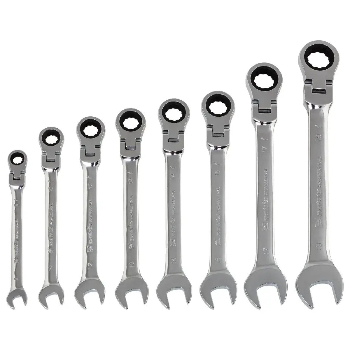 Batafsil tavsif: Menteşali 8 ta kombinatsiyalangan kalitlar to'plami, 8-19 mm, CrV. Matrix