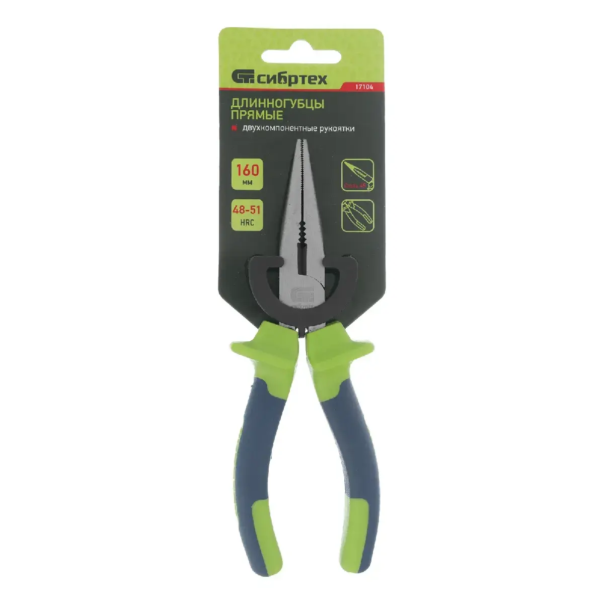 Batafsil tavsif: Uzun burunli pense, tekis, 160 mm, ikki komponentli tutqichlar. Sibirtech