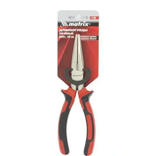 Batafsil tavsif: NICKEL uzun burunli pense, 180 mm, tekis, nikel bilan qoplangan, ikki komponentli tutqichlar. MTX