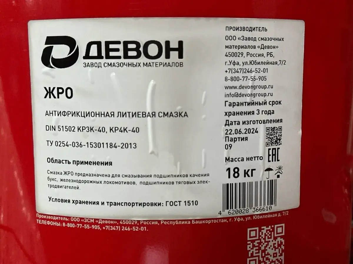 Batafsil tavsif: Temir yo‘l moyi Devon ЖРО (18kg)
