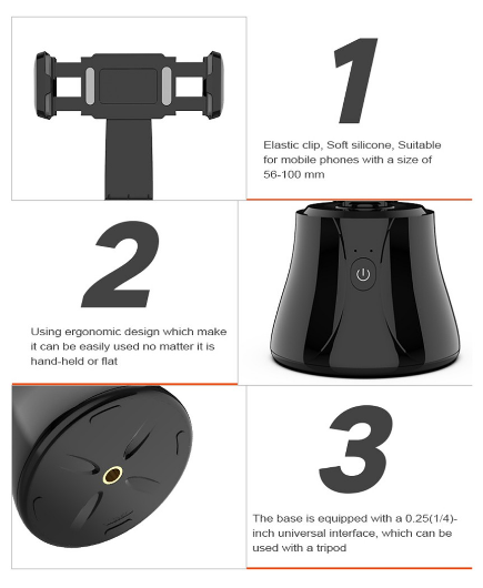 1. Держатель для телефона с функцией отслеживания 360 объектов должен использоваться вместе со смартфоном.
