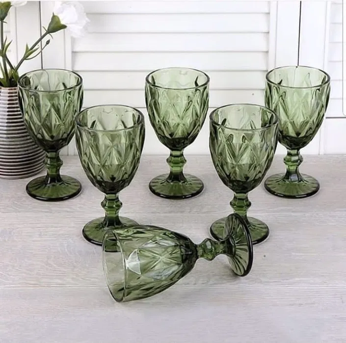 Бокалы в форме ромба ручной работы, позволят насладиться вкусом вина в уютной атмосфере, создадут настроение и станут прекрасным подарком. Выделяются своей красотой и не остаются без внимания. Подойдут для домашнего использования и для оформления праздничного стола. В коллекции представлены бокалы разных цветов.