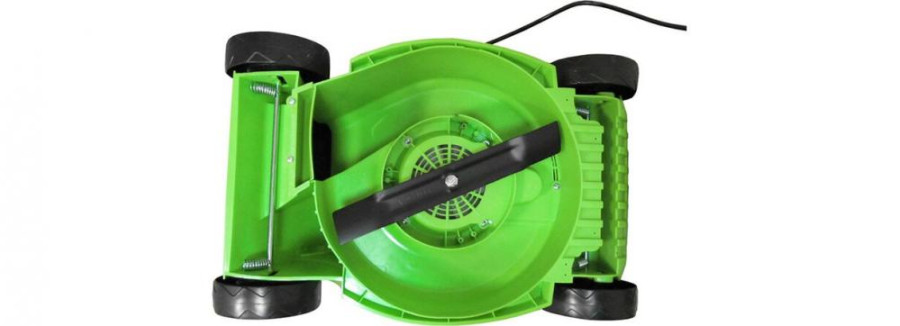 Основным достоинством данной газонокосилки являются: малые габариты и легкий вес, всего 6,9 кг. Что позволяет комфортно работать на небольших извилистых участках. Модель оснащена 5 уровнями установки высоты скашивания. Для экономии пространства при хранении ручка газона косилки складывается. Конечно, обязательным элементом безопасности является кнопка — предохранитель от случайного включения.