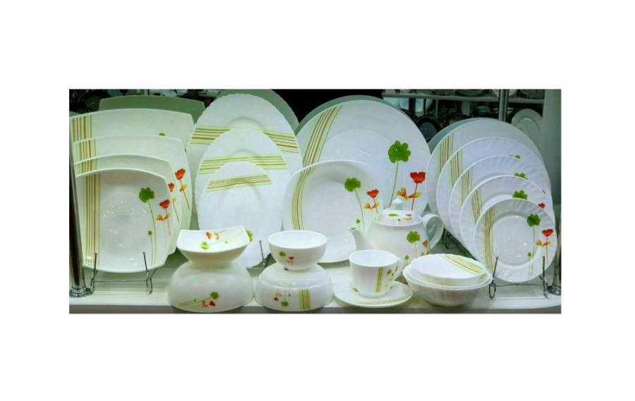 Столовый сервиз на шесть персон Амелия изготовлен из высококачественной стеклокерамики. Этот материал не тускнеет, устойчив к механическим повреждениям, не впитывает запахи и легко моется. Предметы набора можно использовать в микроволновой печи.