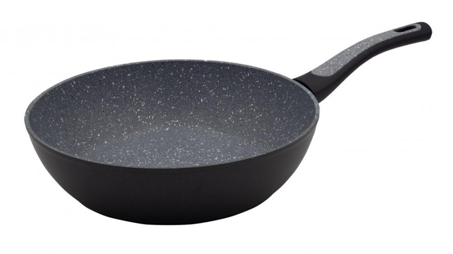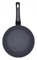 Серия выполнена из кованного алюминия покрытого стойким антипригарным мраморным покрытием черного цвета Megastone – это новое поколение многослойных «шершавых» покрытий, в несколько раз превышающих показатели прочности традиционных антипригарных покрытий. Внешнее покрытие чёрного цвета - легкое в уходе, стойкое к царапинам и открытому огню.