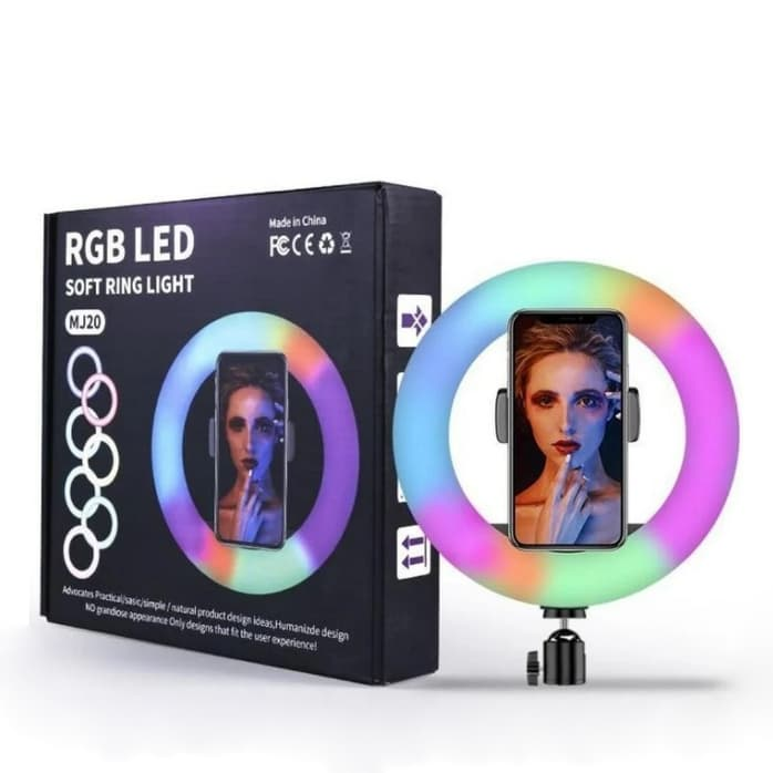 Цветная кольцевая RGB лампа со штативом MJ 20 - это 15 цветовых схем и 10 ступеней яркости. Теплый свет / холодный свет / естественный свет одним ключом. Подходит для фотографии, потокового видео, прямой трансляции. Подходит для мобильных телефонов до 6,5 дюймов. Вращение на 360 градусов для регулировки угла.