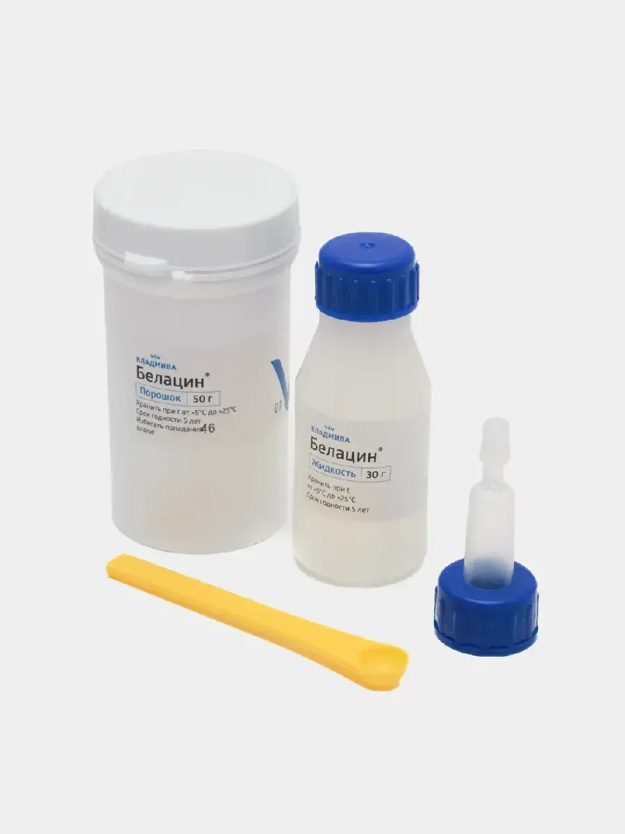Силикатный цемент "Белацин" выпускается в виде комплекта порошок-жидкость.