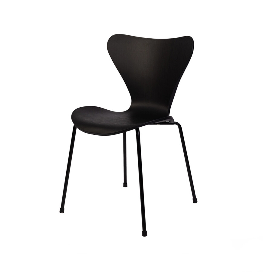 Стул с сиденьем и спинкой из ясеня, тонированного в черный цвет. Лакированная основа черного цвета. Штабелируемый стул. Высота сиденья 46 см.