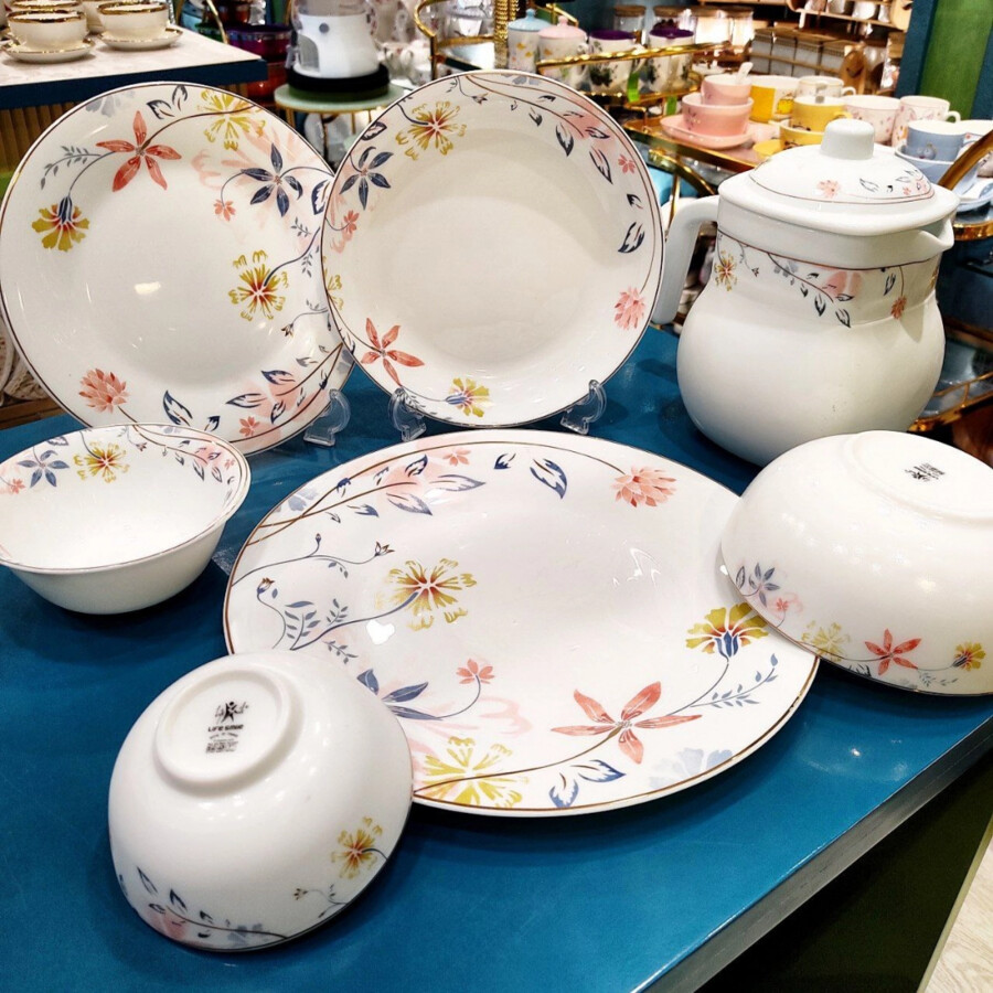 6 мисок 6 чаша 6 маленьких тарелок 20 см 6 больших тарелок 28 см 6 глубоких тарелок 20 см 6 маленьких салатниц 13 см 1 большая салатница 23 см 2 основные тарелки 26х36см 1 чайник 1,5 л 6 чашек по 200 мл 6 чашек и тарелок 13 смМожно мыть в посудомоечной машине.Можно использовать в микроволновке.Изготовлен из стеклокерамики!Производство: Дубай