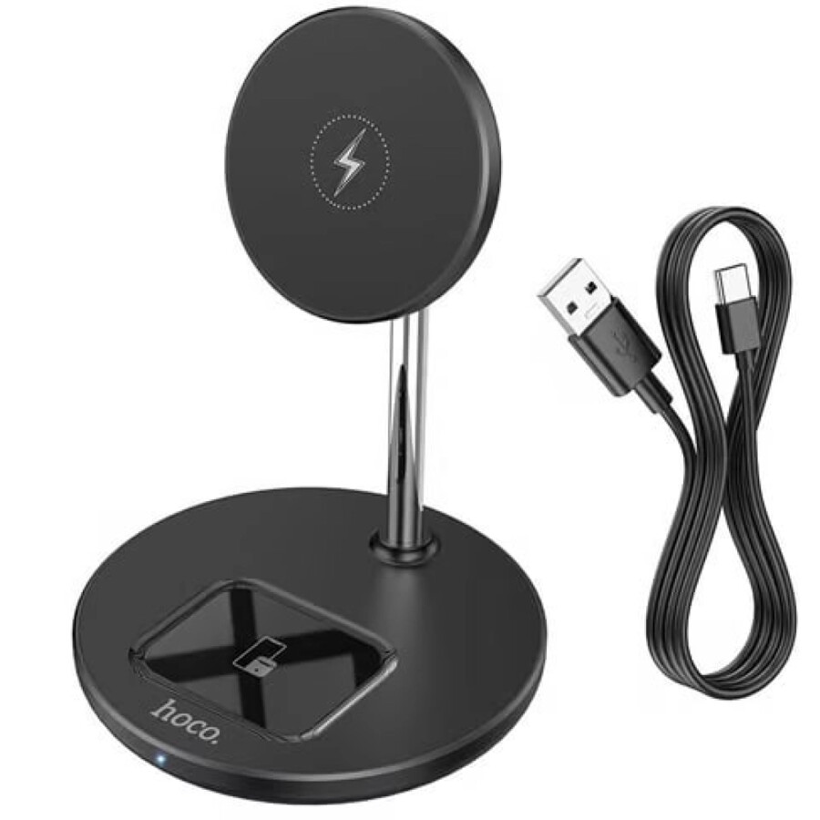 Универсальное беспроводное зарядное устройство 2 в 1 от Hoco в черном цвете.