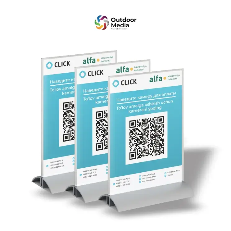 Outdoor Media производит настольные таблички, которые подчеркивают профессионализм и статус вашего офиса или банка. Мы создаем изделия, сочетающие в себе эстетику и долговечность.